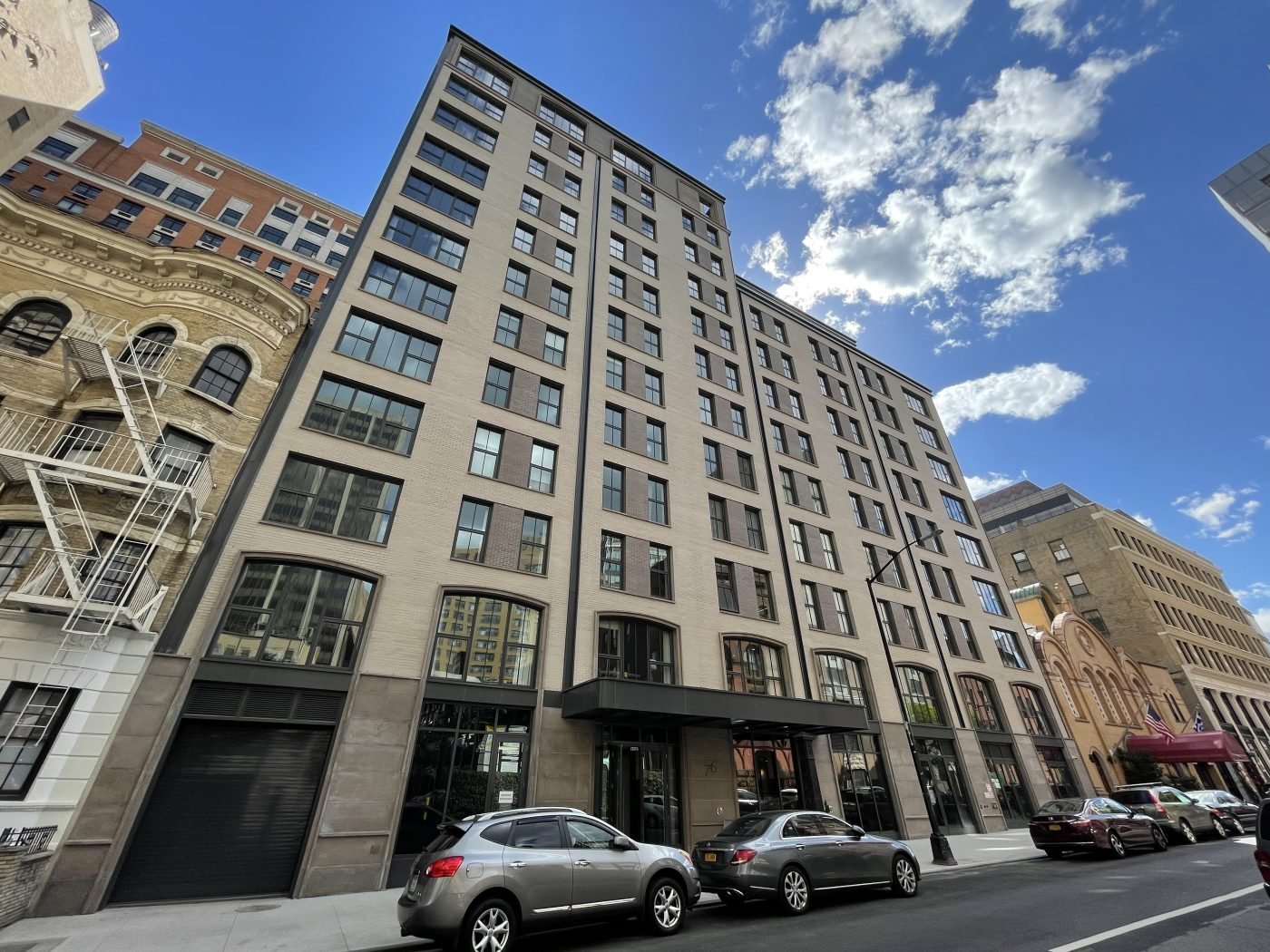 Construction is now complete on The Symon, a 13-story condominium building at 76 Schermerhorn Street in Brooklyn Heights. Designed by Colberg Architecture and developed by Lonicera Partners, Orange Management, and The Davis Companies, the property features 59 units with interiors by Studio DB, which also led the design of the façade. The project is located between Boerum Place and Court Street, along the border with Boerum Hill.